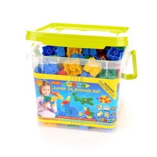 Stavebnice Morphun Junior 24 Animals obsahuje 252 dílků. Součástí balení jsou návody k sestavování různých zvířat. Stavebnice je uložená v pěkném plastovém boxu. Vhodné pro děti od 4 let. Všechny stavebnice Morphun lze vzájemně kombinovat.