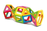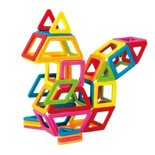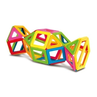 Magnetická stavebnice Můj první Magformers 54 obsahuje celkem 54 dílků - 12 trojuhelníků, 24 čtverců, 6 kosočtverců, 6 lichoběžníků a 6 obdélníků. Dílky jsou plnobarevné s výraznějšími barvami navrženými speciálně pro vnímání batolat a malých dětí. Mají zesílené stěny a jsou odolnější proti oděrům a pronikání vlhkosti. Absolutní zdravotní nezávadnost je samozřejmostí. Velmi kvalitně jsou zpracovány i přiložené výukové materiály na velkých a odolných kartách.
