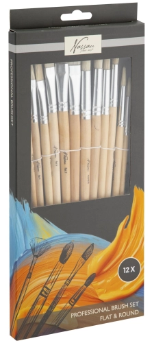 Tato praktická sada štětců Nassau Fine Art (12ks) je ideální pro každého – od začátečníků po zkušené umělce. Obsahuje6 kulatých, 6 plochých štětců různých velikostí, které se hodí pro jemnou detailní práci i široké tahy štětcem.