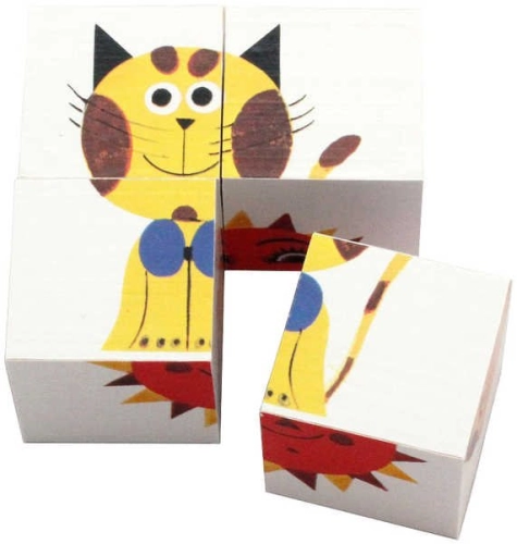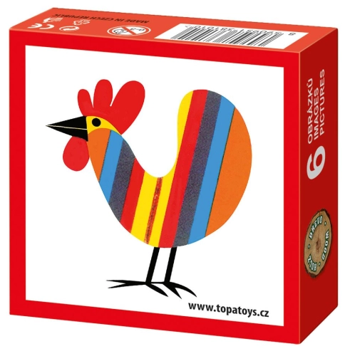 Dřevěné kostky Topa pro nejmenší - 4 kostky s obrázky pro děti od 3 let. Z kostek lze sestavit 6 jednoduchých dětských obrázků. Klasické dřevěné kostky s obrázky rozvíjí dětskou představivost a jsou vyrobeny z kvalitního smrkového dřeva.
