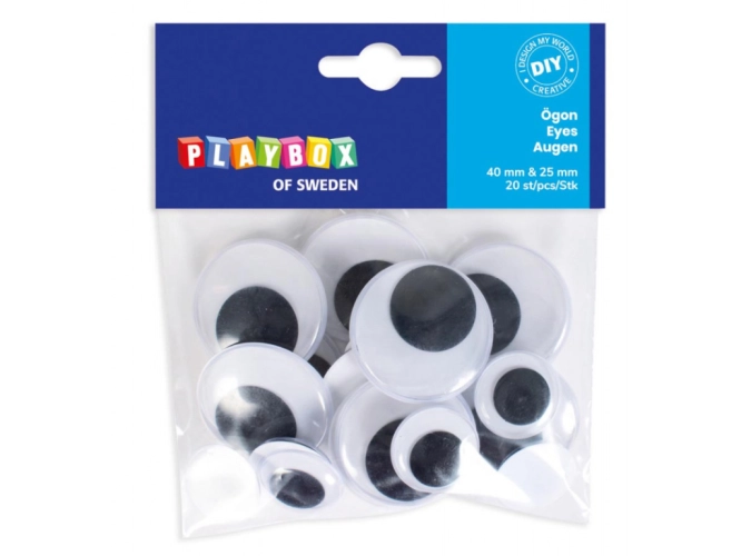 Pohyblivé černobílé oči - lepící , 40mm & 25 mm, 20 ks