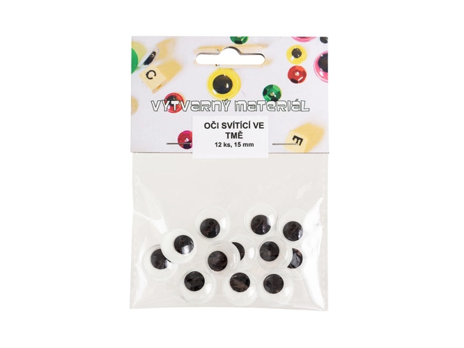Oči černobílé - 12 ks, o průměru 15 mm - ve tmě svítí.