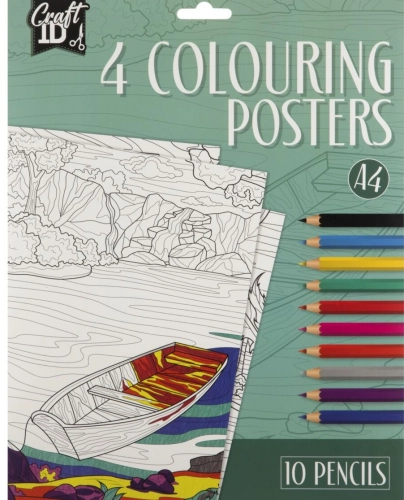 Vymalovánky 4 obrázky A4 + 10 pastelek.  Balení obsahuje 4 obrázky, které si můžete vybarvit dle vlastní fantazie.