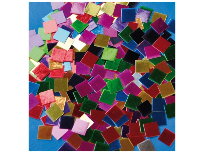 Balení obsahuje 10.000 ks o rozměru 10 x 10 x 0,3 mm v 8 v různých barvách - zlatá, stříbrná, modrá, zelená, červená, fialová, tm. červená, hnědá.