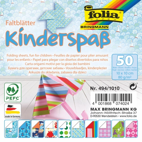 Papíry na origami 10x10 cm, 50 listů, 80 g/m², DĚTSKÉ