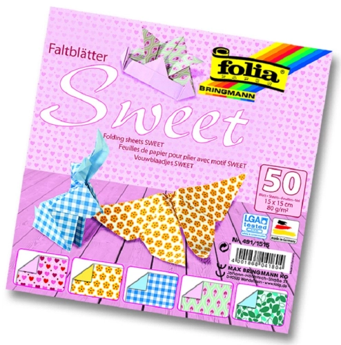 Papíry na origami 15x15 cm, 50 listů, 80 g/m², SWEET