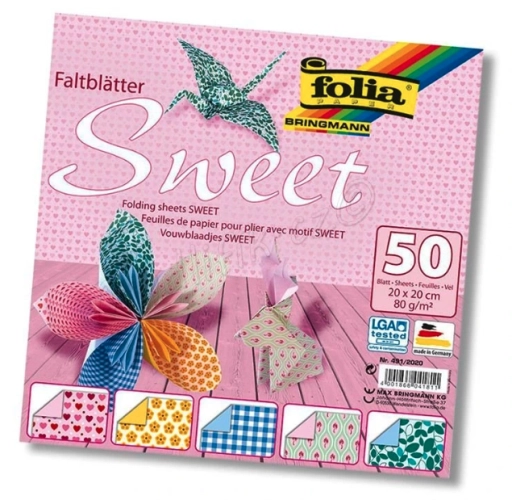 Papíry na origami 20x20 cm, 50 listů, 80 g/m², SWEET