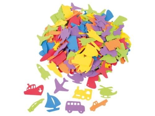 Pěnové dopravní prostředky, 250 ks. Mix barev a velikostí (2 - 5 cm).