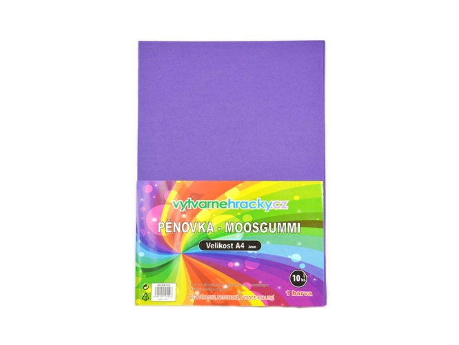 Balení obsahuje: 10 ks fialové pěnovky velikost A4. Tlouška jednoho listu je 2 mm