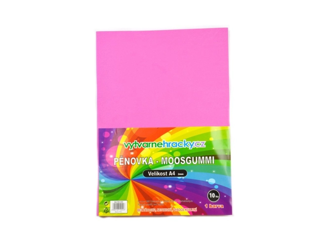 Balení obsahuje: 10 ks růžové pěnovky velikost A4, Tlouška jednoho listu je 2 mm.