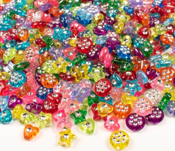 Korálky smíšených barev v různých tvarech s prvky třpytivých kamínků. Vytvořte si náramky a náhrdelníky, nebo proč ne hezkou dekoraci na klíčenku. Lepení nebo přišívání korálků na jakýkoli povrch je také příjemné. Popusťte uzdu své fantazii a kombinujte je s korálky v jiných barvách a tvarech v nekonečných variacích.