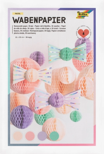 Plástvový papír je speciální, předem nařezaný papír, který po roztažení vytvoří nádhernou prostorovou (3D) voštinovou strukturu připomínající včelí plástve. Každý arch se skládá z mnoha (zde konkrétně 30) slepených vrstev, které umožňují vznik tohoto fascinujícího objemu.