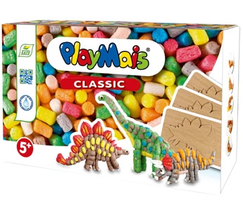 Originální stavebnice PLAYMAIS Classic Dino poskytne vašim dětem spoustu zábavy! Pěnové dílky vyrobené z jedlých surovin lze jednoduše spojovat a vytvářet tak figurky dinosaurů. Stavebnice obsahuje 500 dílků, 4 papírové šablonky dinosaurů, návody a další pomůcky. Doporučeno pro děti od 5 let.