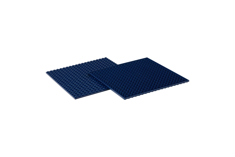 Oboustranná stavební podložka Q-Bricks tmavě modré barvy. Velikost 20x20 výstupků, 16x16 cm.