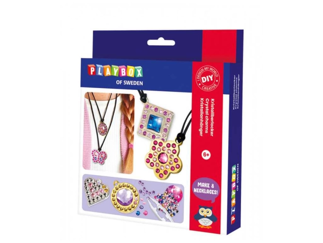 Balení obsahuje 8 druhů přívěsků různý tvarů, 270 ks kamínků různý barech a tvarů, 8m provázku, pinzetu a lepidlo.
