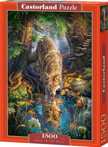 Puzzle 1500 dílků - Pijící vlk v divočině