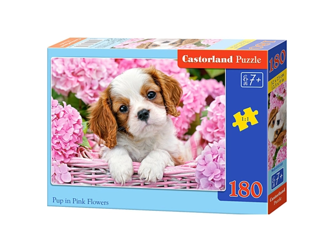 Puzzle Castorland 180 dílků - Štěně v růžových květinách