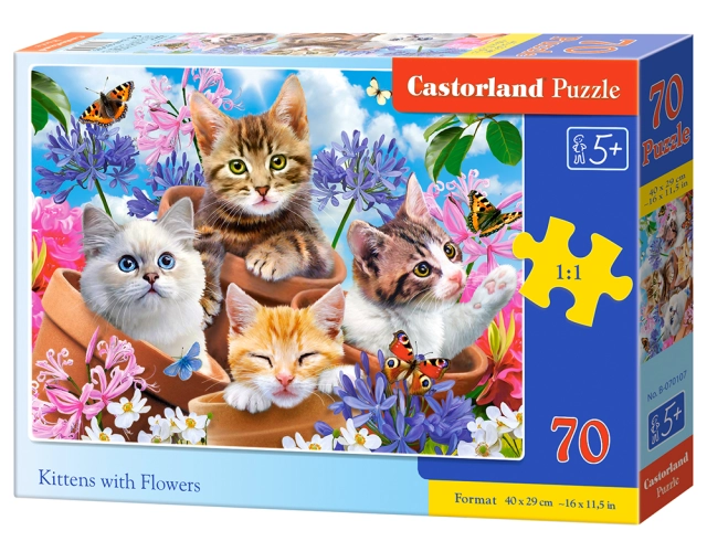Puzzle Castorland 70 dílků premium - Koťátka v květinách