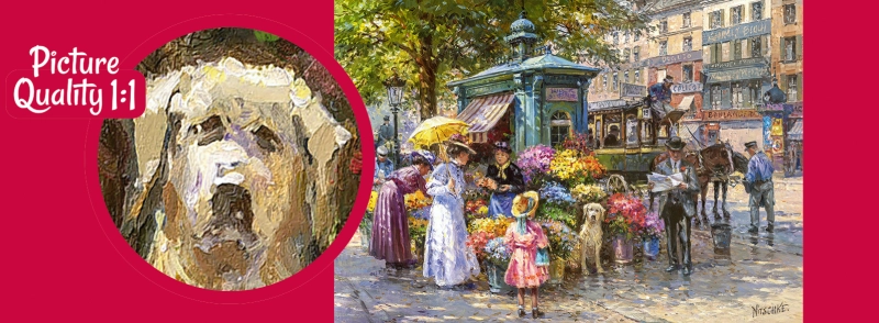 Všechny tyto vlastnosti zajišťují velké potěšení ze skládání puzzle. Složené puzzle má velikost 50 x 70 cm.