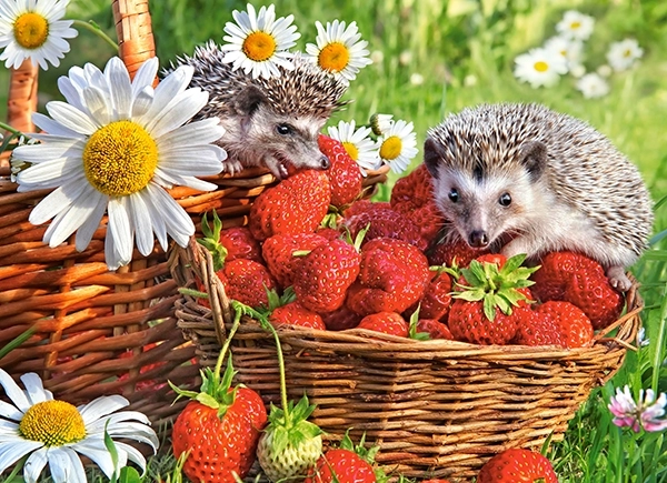 Puzzle Premium 200 dílků - Ježci v jahodách