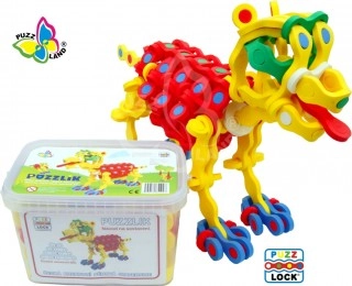 Pěnová stavebnice PUZZLIK obsahuje 76 stavebních dílů stavebnice PUZZLOCK a dá se z nich dle návodu složit pes PUZZLIK. Díly se dají použít i pro vlastní kreativní tvorbu. Pes PUZZLIK po složení má rozměry cca: výška 410 mm, délka 660 mm a šířka 200 mm. Systém spojení stavebnice PUZZLOCK umožňuje měnit polohu sestaveného psa. Dílky jsou stejné jako u menších stavebnic Puzzlock - PRACUJEME, PLUJEME, ZOO ..... Stavebnice je uložená v praktickém plastovém boxu z PP.