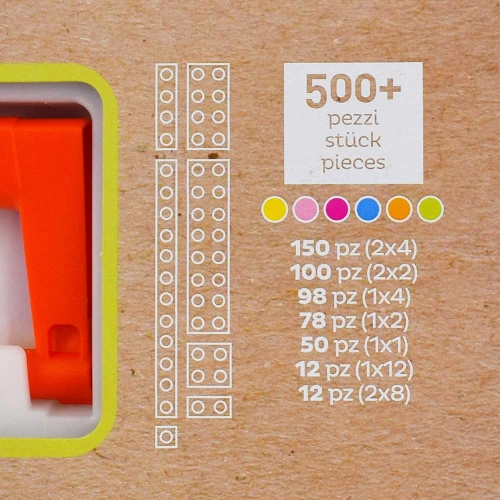 Q-bricks Sada Malá stavitelka - Floral 500+ obsahuje více než 500 kostek Q-bricks v růžové, jasně oranžové, trávově zelené, světle růžové, světle modré a melounové barvě v 7 velikostech 2x4, 1x4, 2x2, 1x2, 1x1, 1x12 a 2x8. Kostky jsou uložené v pěkném a praktickém kufříku.