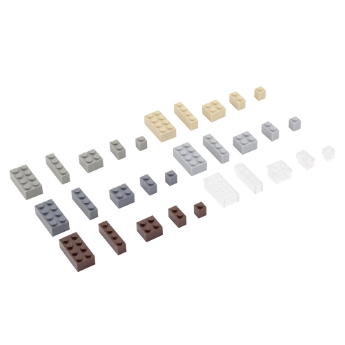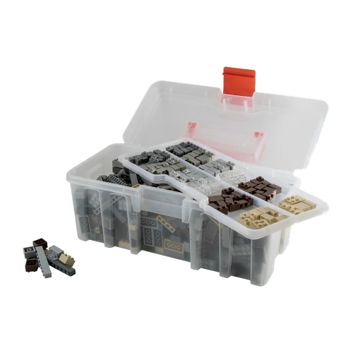 Q-bricks Sada Bulding 500+ obsahuje více než 500 kostek Q-bricks ve světle šedé, šedé, tmavě šedé, průhledné, béžové (slonová kost) a tmavě hnědé barvě v 7 velikostech 2x4, 1x4, 2x2, 1x2, 1x1, 1x12 a 2x8. Kostky jsou uložené v pěkném a praktickém kufříku.