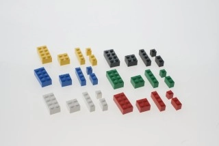 Složení: 250 ks kostek 4x2, 150 ks kostek 4x1, 90 ks kostek 2x2, 100 ks kostek 2x1, 70 ks kostek 1x1