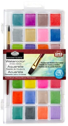 ROYAL and LANGNICKEL Akvarelové barvy perleťové, 28 ks + štětec