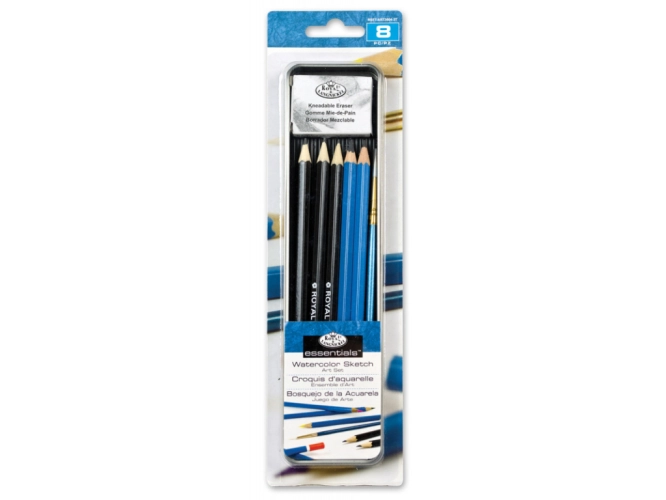 Balení obsahuje: 3 grafitové tužky - HB, 2B, 4B, 2 akvarelové tužky, 1 štětec, guma.