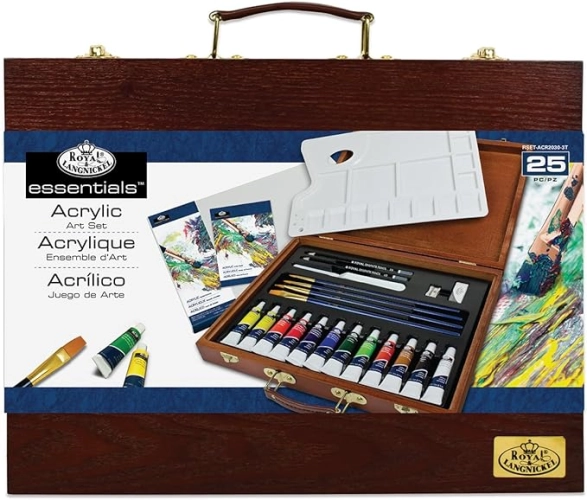 Set akrylových barev v krásném praktickém dřevěném kufříku.