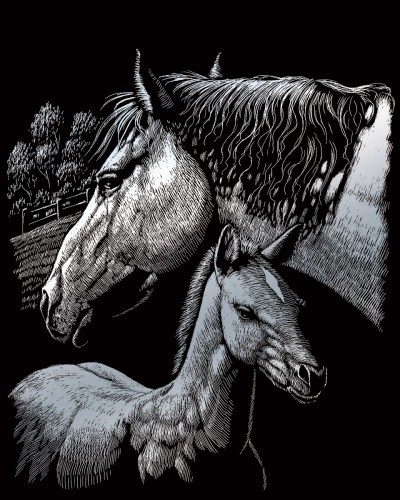 ROYAL and LANGNICKEL Stříbrný vyškrabovací obrázek - Klisna s hříbětem