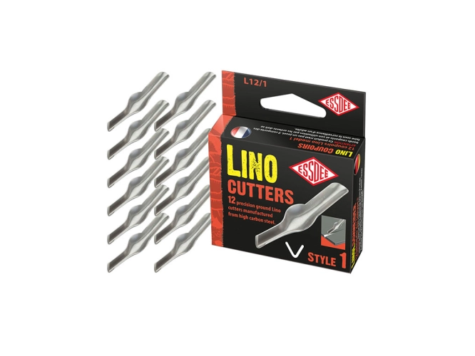 12 přesně broušených rydel z oceli s vysokým obsahem uhlíku ve stylu 1. Tento typ rydla se hodí pro jemné linie a šrafování. Pro vytvoření linie 0,5 mm a menší použijte Lino SoftCut, pro silnější linii použijte klasické Lino.