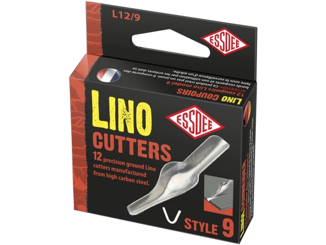 12 přesně broušených rydel z oceli s vysokým obsahem uhlíku ve stylu 4 - rydlo pro hluboké rýhy ve tvaru "v". Krásně klouže po linu. Vhodné i na tvrdší materiály.