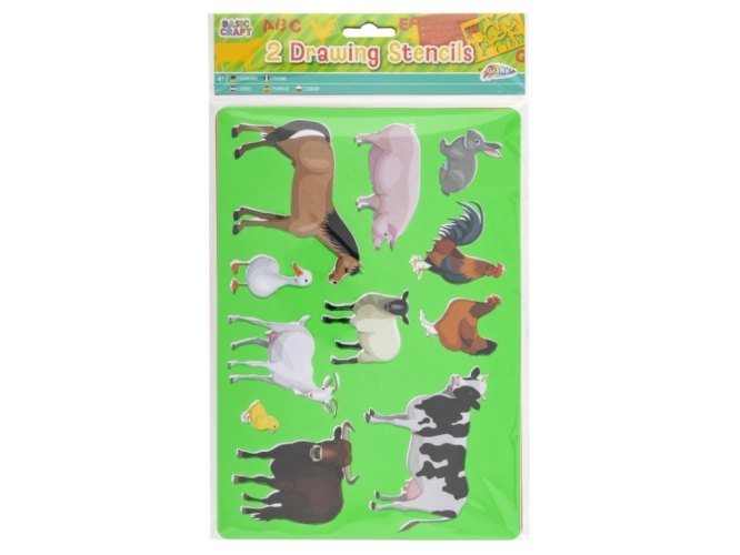 Balení obsahuje 2 archy šablon - domácí zvířata, čísla a abeceda.