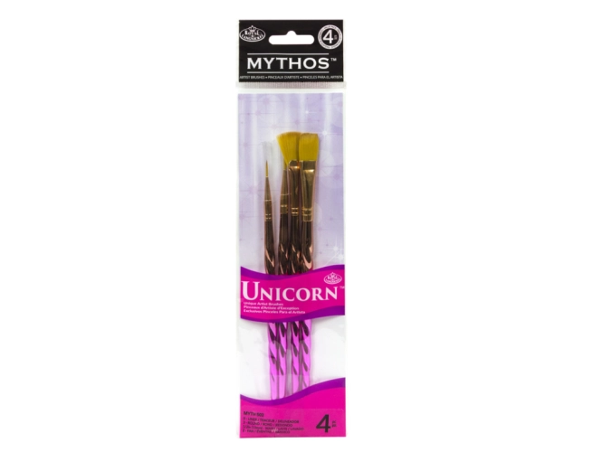 Tato sada obsahuje 4 štětce s rukojetí, má kovovou povrchovou úpravu a víří roh jednorožce.