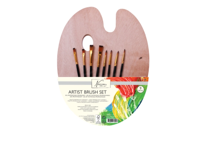 Sada uměleckých štětců obsahuje - 4x plochý štětec, 4x kulatý štětec, 1x dřevěná paleta