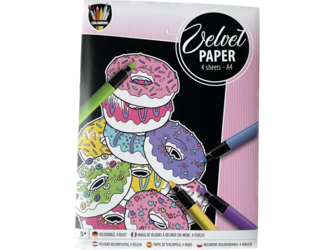 Osahuje 4 sametové předlohy A4 k vymalování fixy.