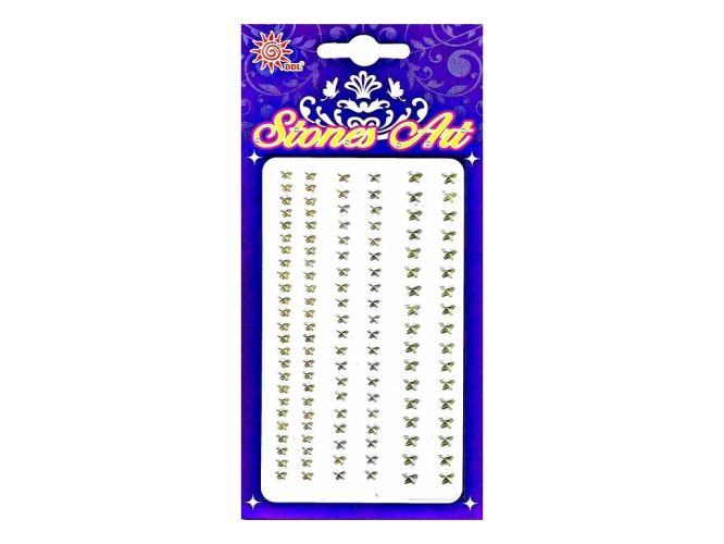 Samolepicí kamínky - bílé hvězdičky 124 ks, velikost balení 8x15 cm. Velikost hvězdiček - 0,3 cm, 0,4 cm a 0,5 cm. Jednotlivé kamínky lepte na čisté místo.
