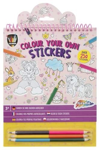 Obsahuje: 250 ks samolepek k vymalování + 3 ks oboustraných pastelek( 6 barev)