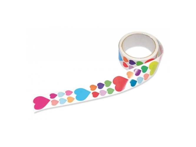 Barevné samolepky srdíček na roli (870 ks). Průměr role 7,5 cm, velikost srdíček - ccy 3,5 cm a 1,5 cm.