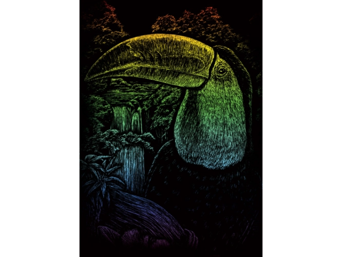 Sada obsahuje obrázek natištěný na černém kartonu, škrabací pero a vzorek na vyzkoušení. Po seškrábání linek předtištěného obrázku se Vám objeví krásný rytinový obrázek, který se pěkně leskne z různých úhlů pohledu. Vhodné od 8 let.