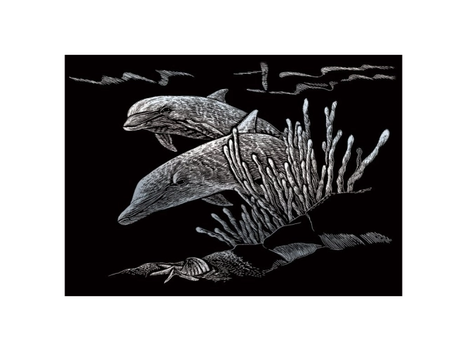 Seškrabovací obrázek- mini- Stříbrný- Delfíni