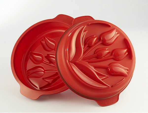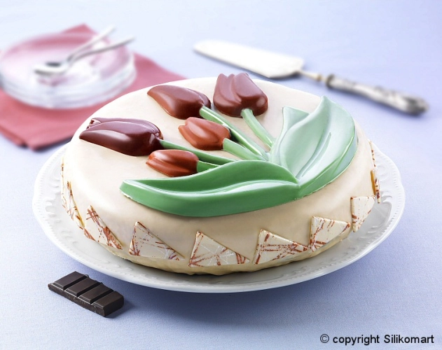 Kvalitní silikonová forma TULIPANO Silikomart z řady Funcy & Function na upečení kulatého moučníku nebo dortu s obrázkem TULIPÁNU. Silikonová forma je opatřená bezpečnostním rámečkem (SAFE RING) pro lepší manipulaci s formou. Forma je pěkně zabalená ve stylovém boxu.