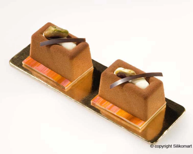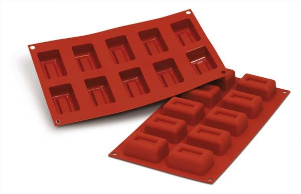 Kvalitní silikonová forma na pečení Silikomart Medium Lingotto na přípravu 10 ks zákusků či aspiků ve tvaru obdélníku.