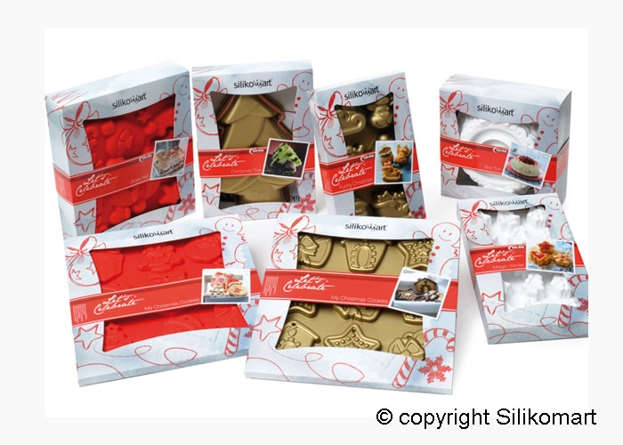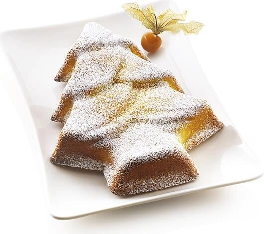 Kvalitní silikonová forma Christmas Tree od Silikomart z řady Let's Celebrate na upečení moučníku ve tvaru vánočního stromečku. Silikonová forma je opatřená bezpečnostním rámečkem (SAFE RING) pro lepší manipulaci s formou. Formička je zabalená v pěkné papírové krabičce. Všechny výrobky SILKOMART splňují normy EU a mají certifikáty CE a FDA. Vyrobeno v Itálii.
