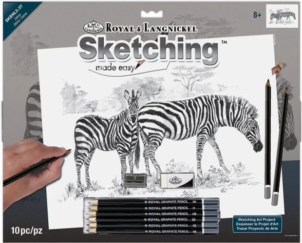 Sada obsahuje 6 skicovacích tužek 3H,H,HB,2B,5B,6B, předkreslený obrázek, gumu a ořezávátko.
