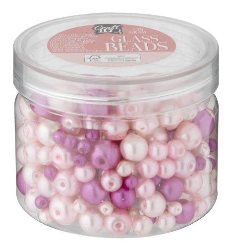 Skleněné korálky, 130 g - růžové
