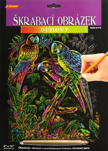 Škrabací obrázek - duhový - Papoušci