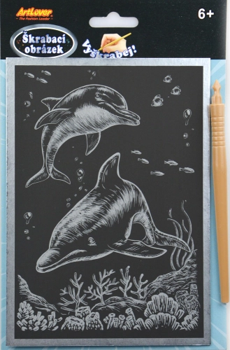 Škrabací obrázek - stříbrný A5 - delfini, cena za jeden ks, v boxu 24 ks